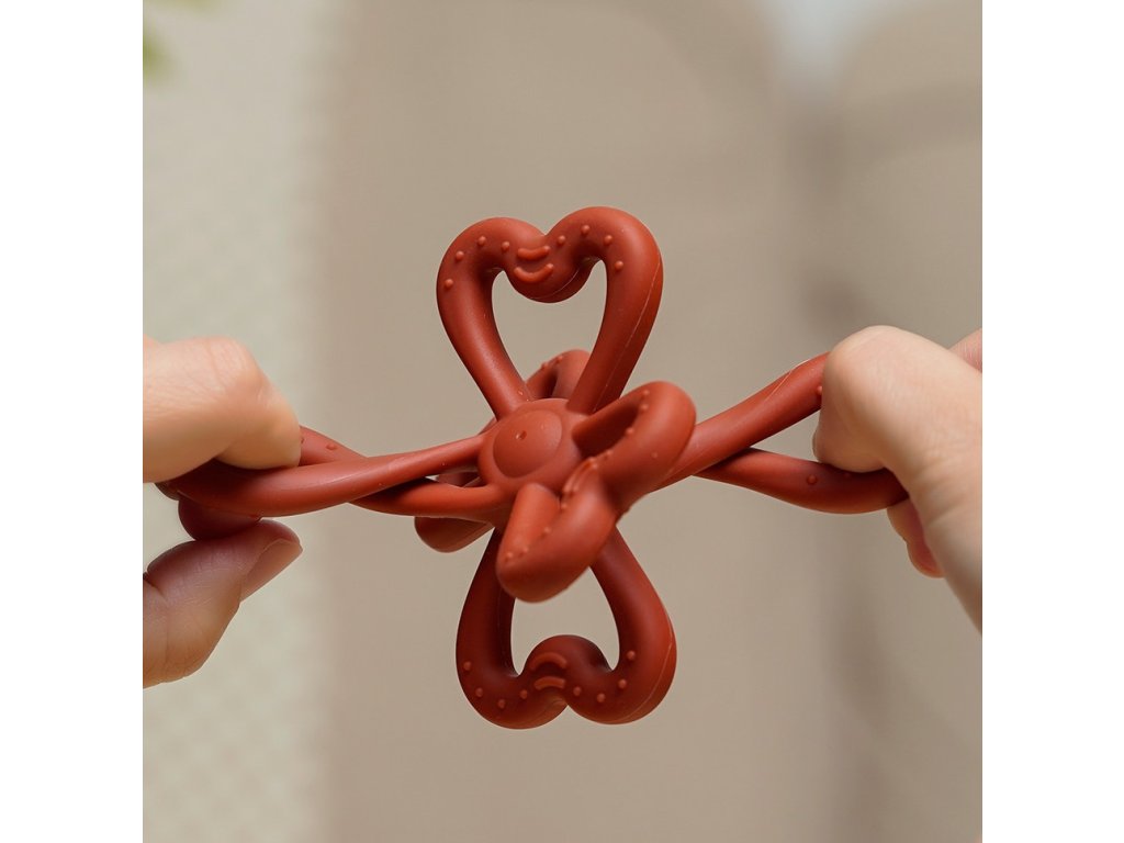 Silikónové hryzátko na masírovanie ďasienok ďatelina tmavočervená